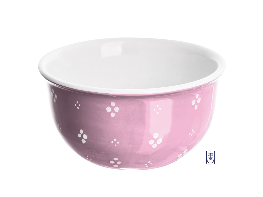 Miska bez uší 4puntík bílý na růžové