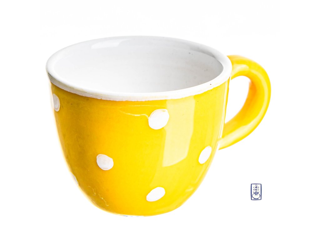 Šálek puntík bílý na žlutém